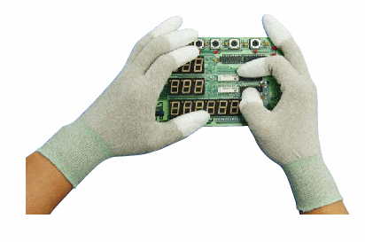銅の糸とカーボンの糸で各編んで 手にぴったりと当たる内皮で軽くて伸縮性が得意です。 指先にPUコートをして細かい作業に得意です。 静電気から部品とか製品をまもる制電性を持って、 静電気防止と精密作業に要求されています。 特徴 表面抵抗:銅 104以下Ω カーボン 108Ω以下 静電気放置と精密作業、清潔を要求する半導体、 クリーンルーム、コンピューター組み立て、 電気電子組み立て、CD/Photo及びVideoフイルム作業 シームレス編織